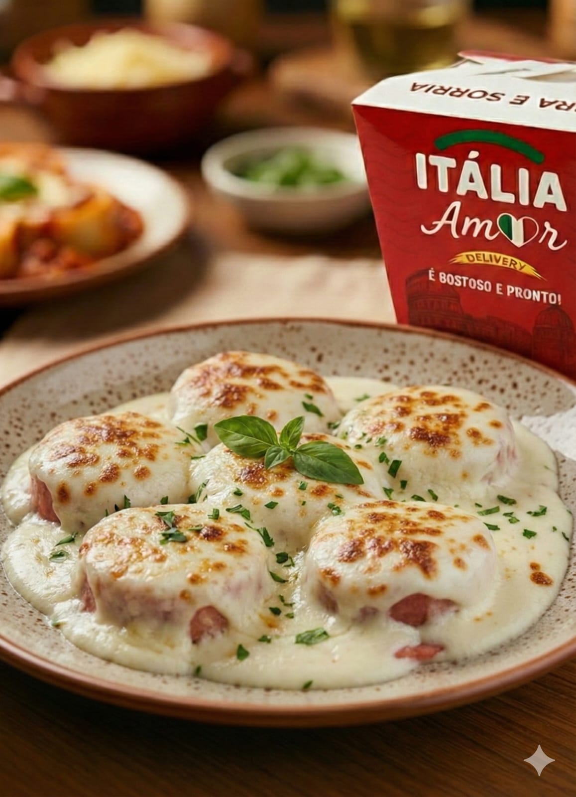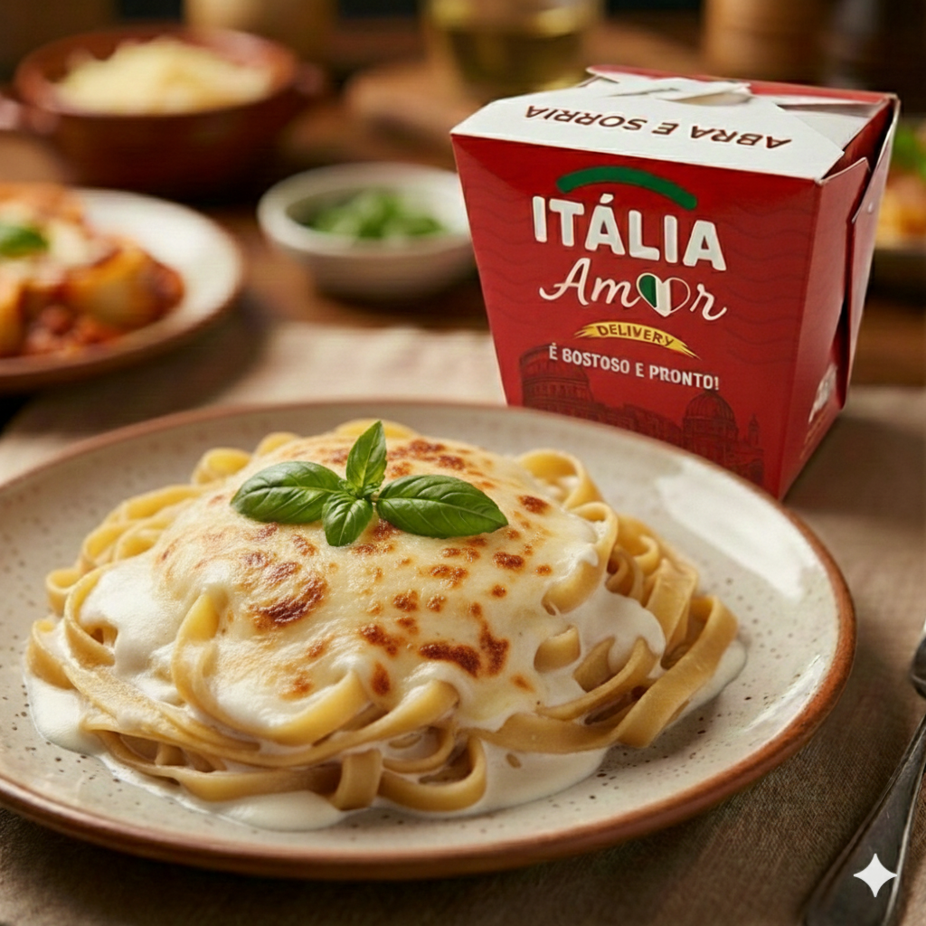 Delicioso Talharim de massa fresca envolvido no nosso autêntico Molho Béchamel. Aveludado, cremoso e suavemente temperado, este prato ganha o toque especial de cubos de Bacon crocante e é gratinado com uma camada farta de queijo muçarela. Um clássico da culinária italiana, irresistível e reconfortante.